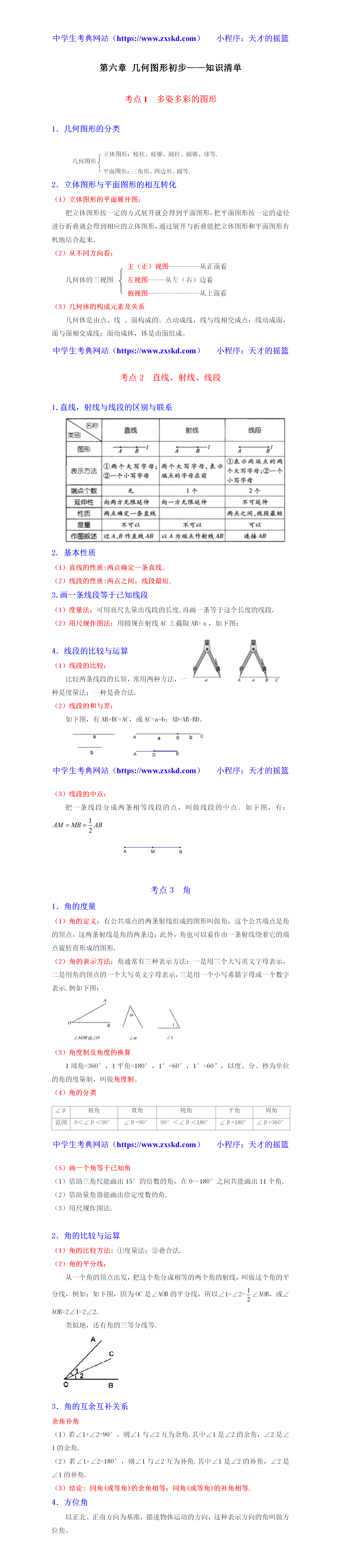 浙教版数学七上第六章 几何图形初步——知识清单