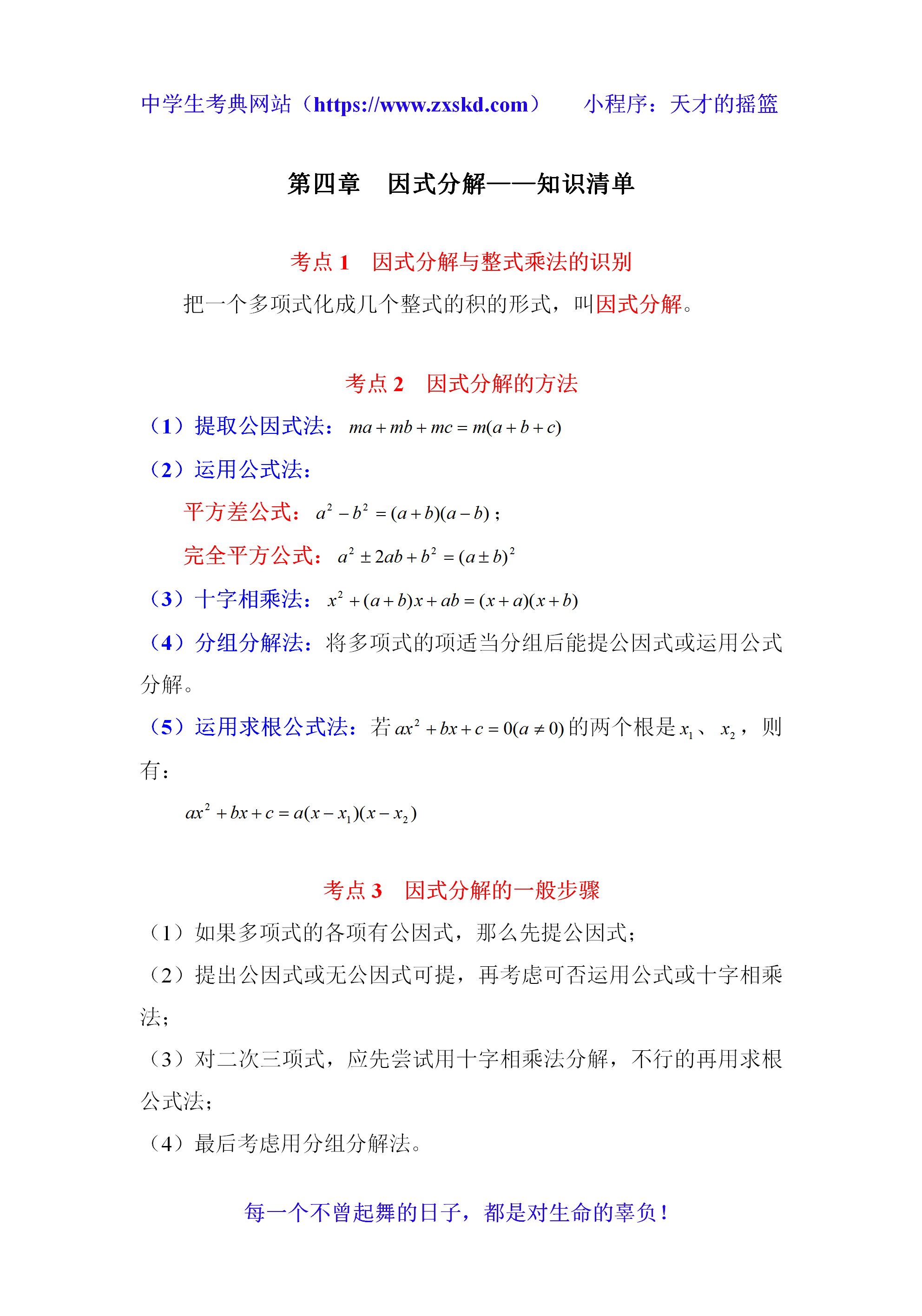 浙教版数学七下第四章 因式分解——知识清单