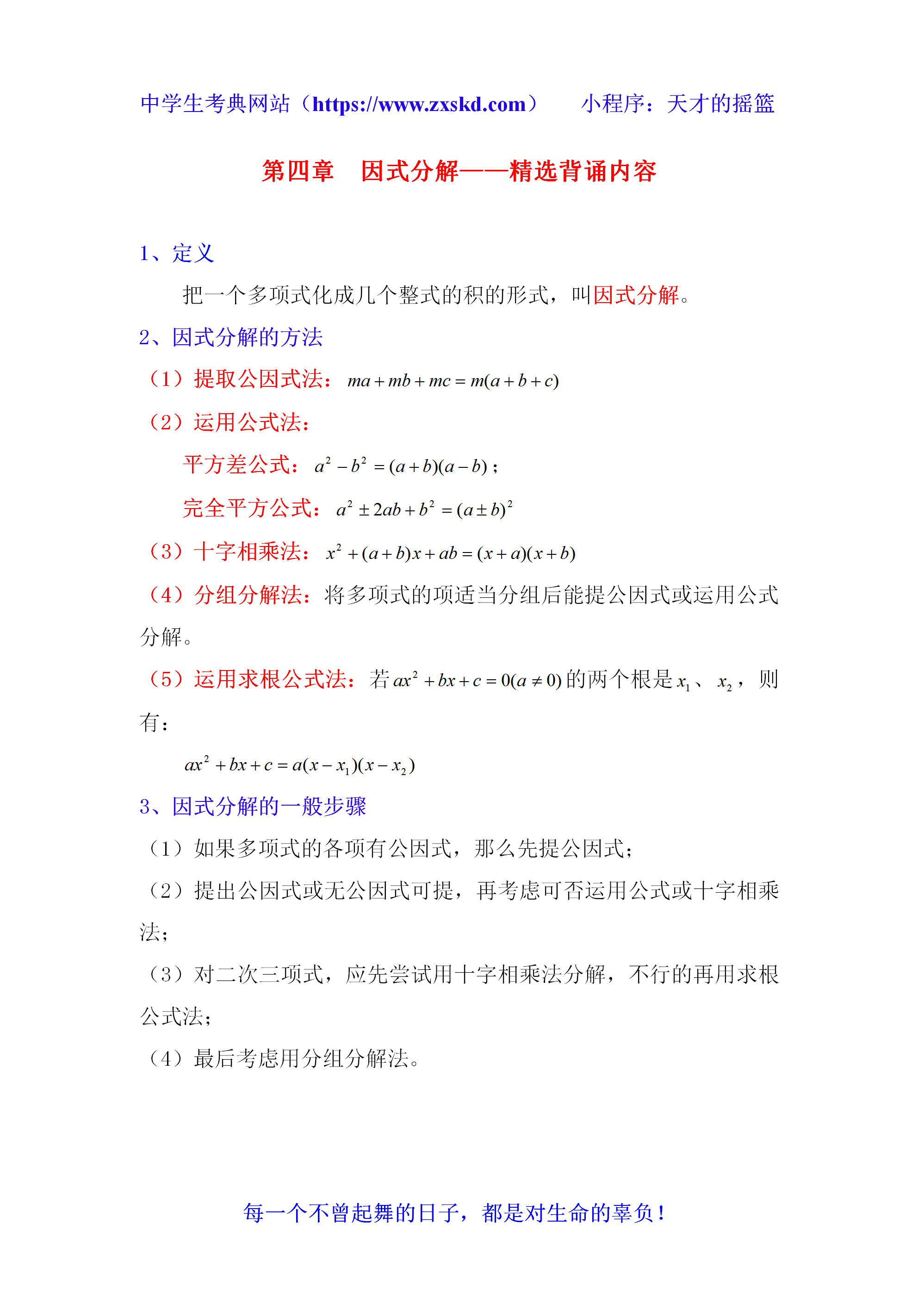 浙教版数学七下第四章 因式分解——精选背诵内容