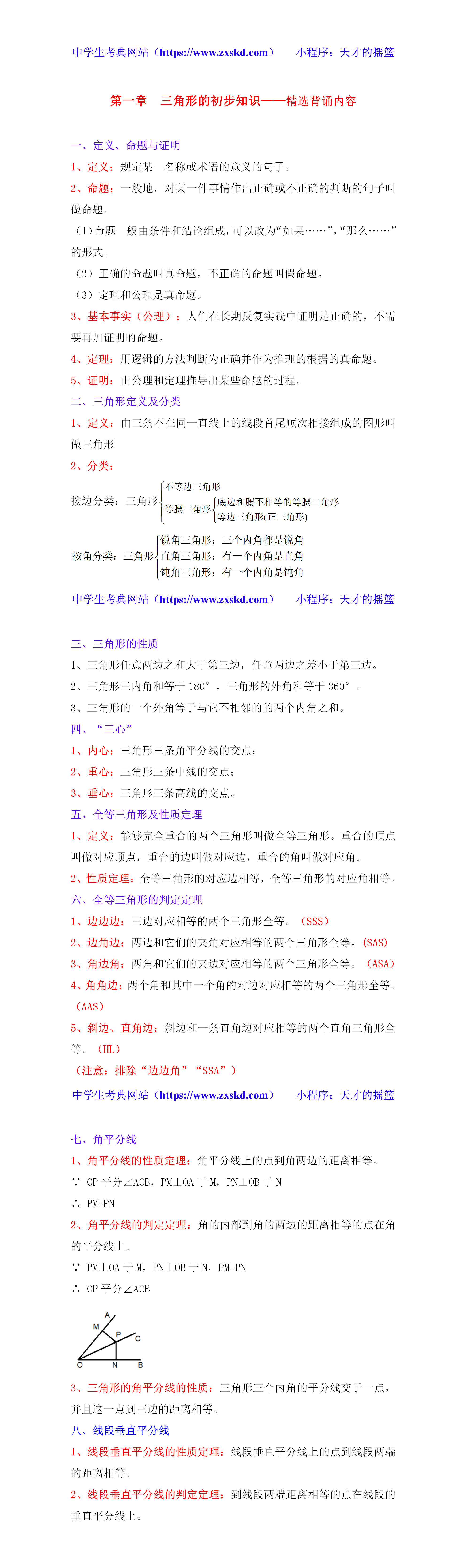 浙教版数学八上第一章 三角形的初步知识——精选背诵内容