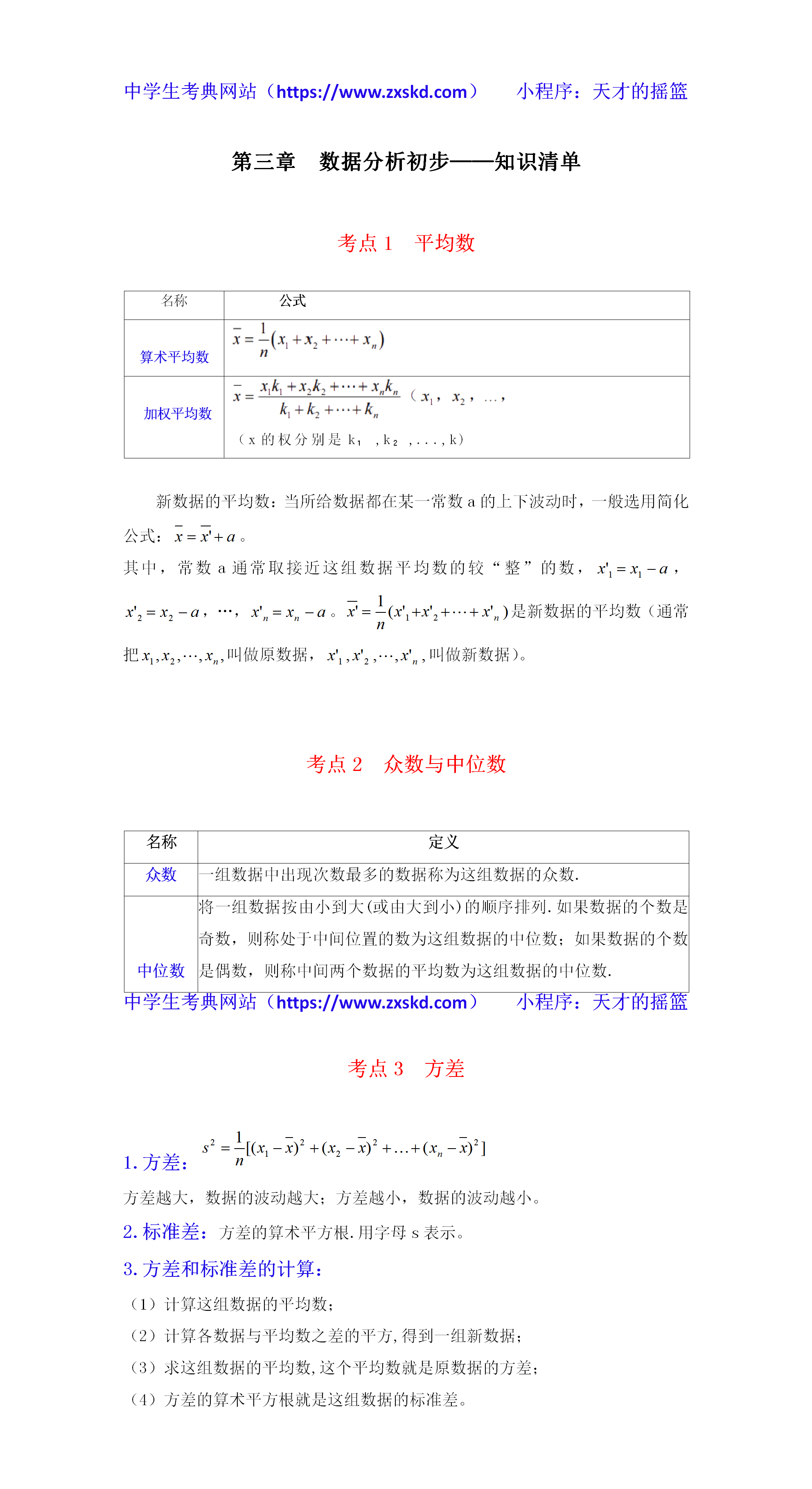 浙教版数学八下第三章 数据分析初步——知识清单
