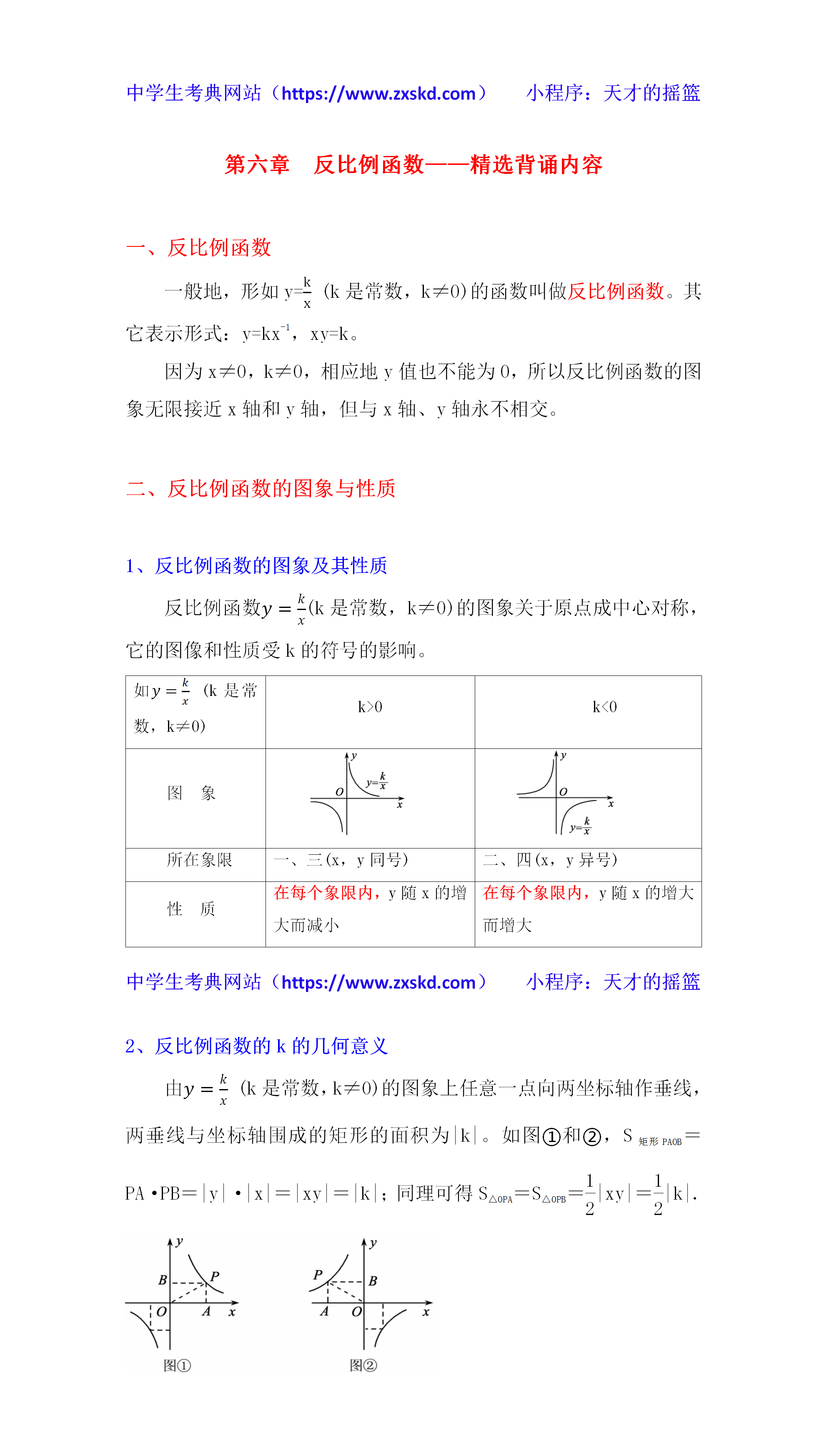 浙教版数学八下第六章 反比例函数——精选背诵内容