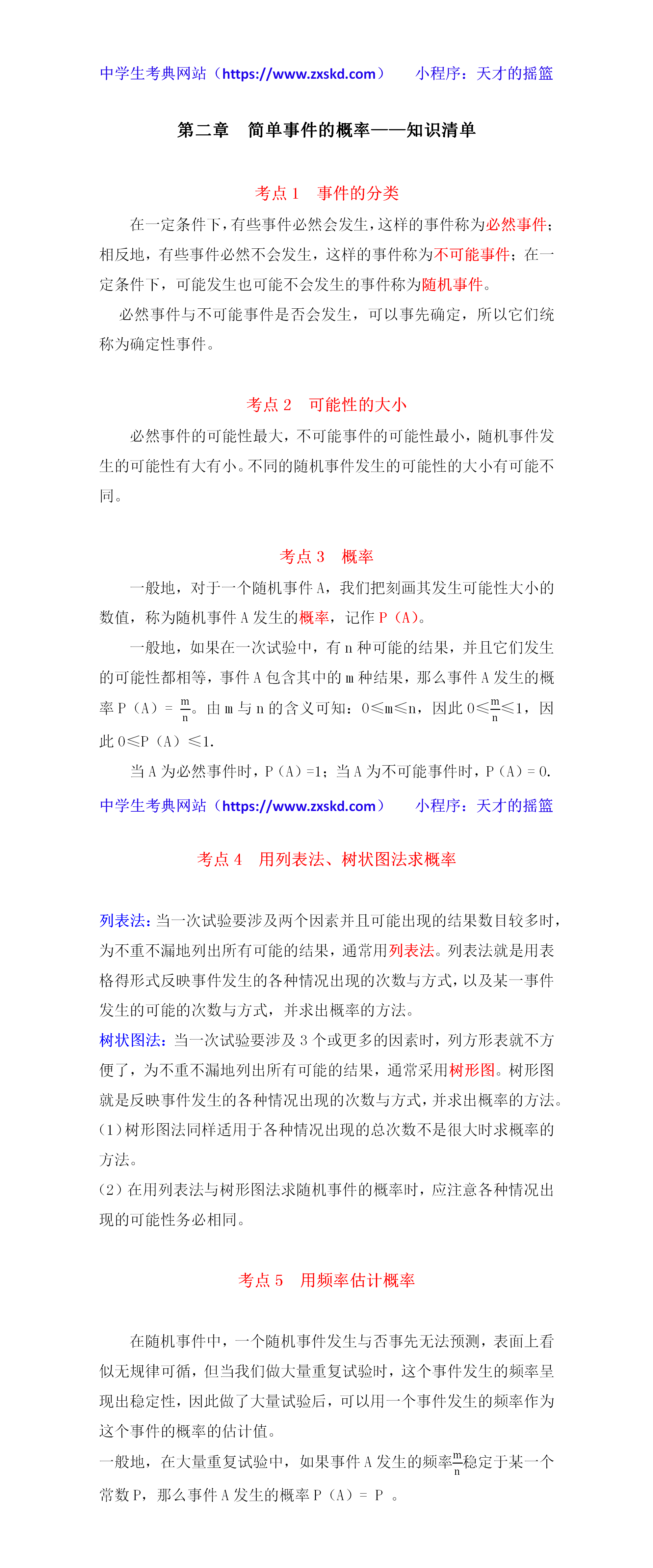 浙教版数学九上第二章 简单事件的概率——知识清单