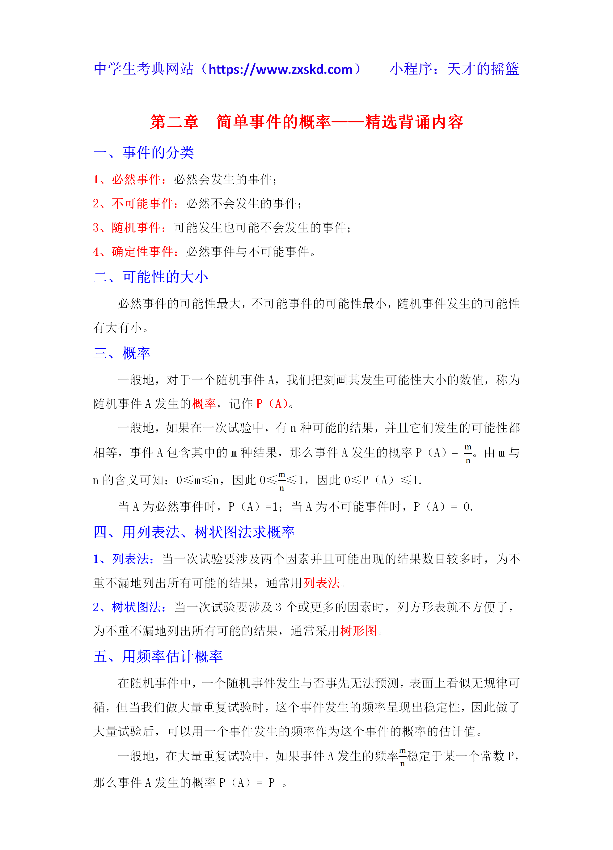 浙教版数学九上第二章 简单事件的概率——精选背诵内容