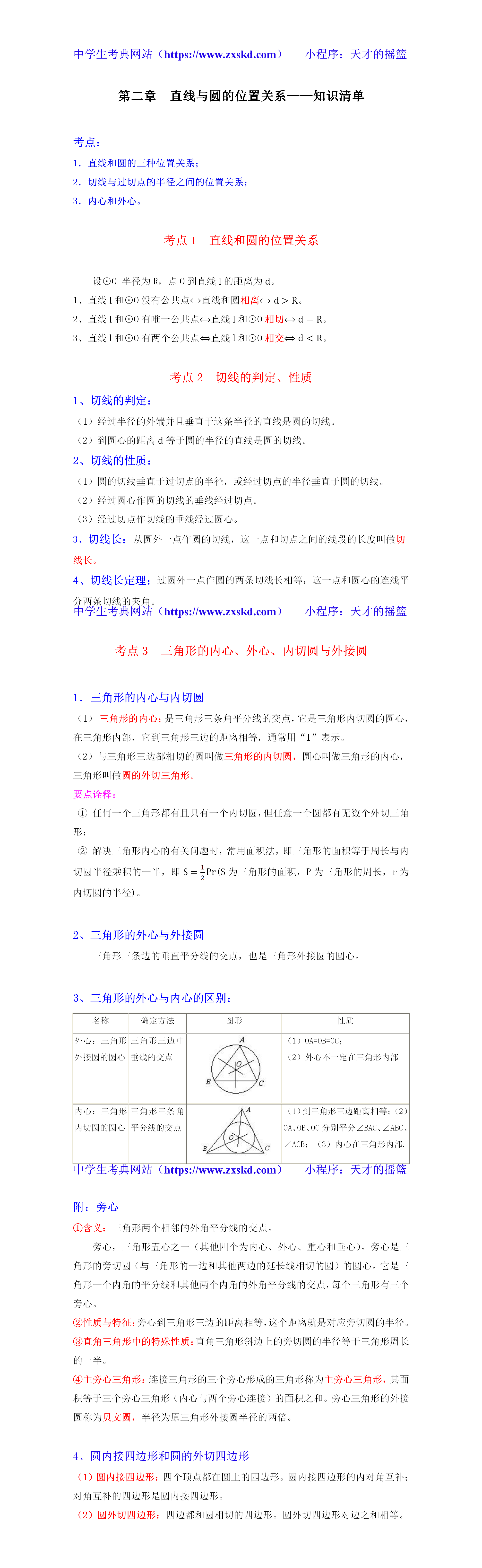 浙教版数学九下第二章 直线与圆的位置关系——知识清单