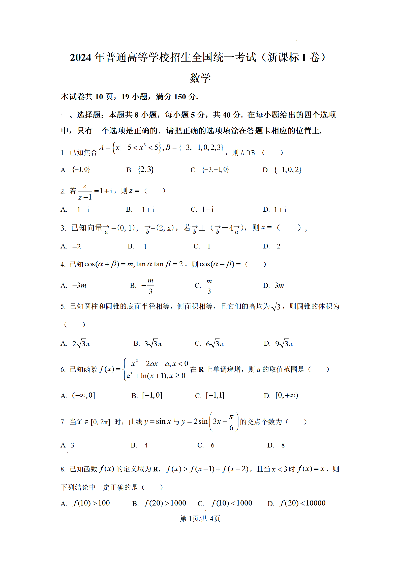 2024年浙江高考数学真题